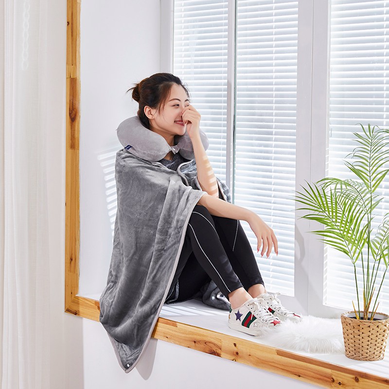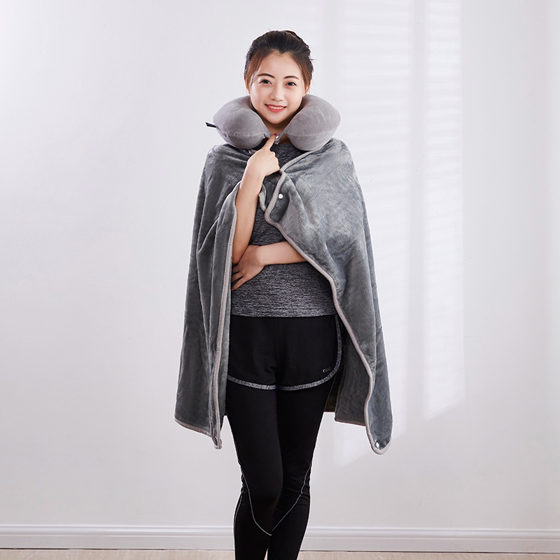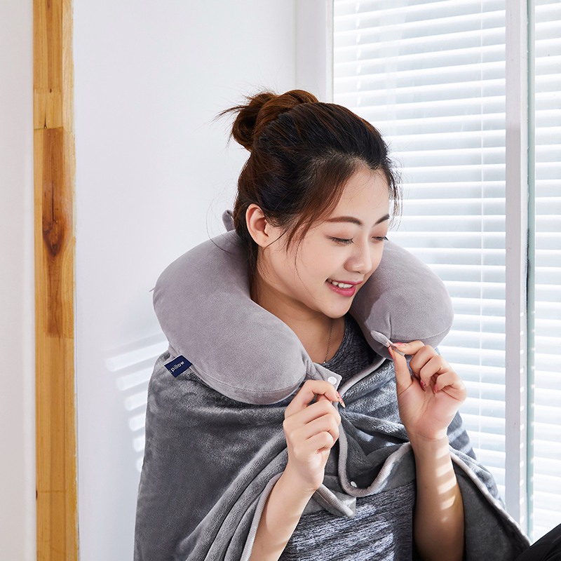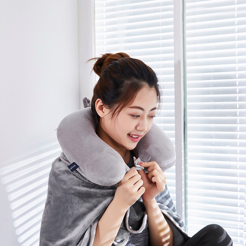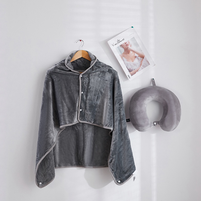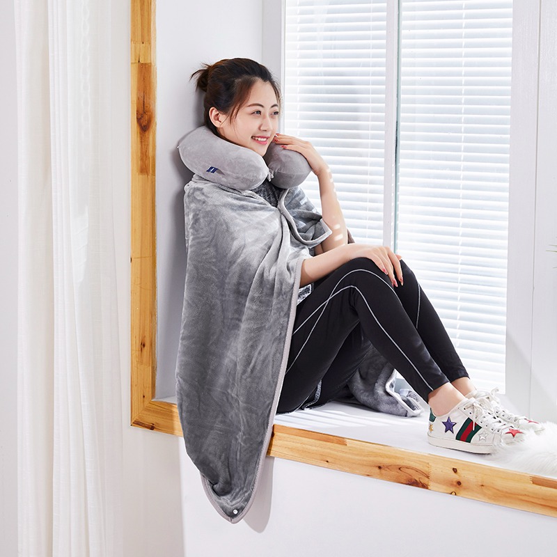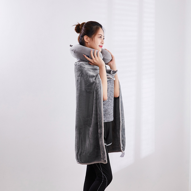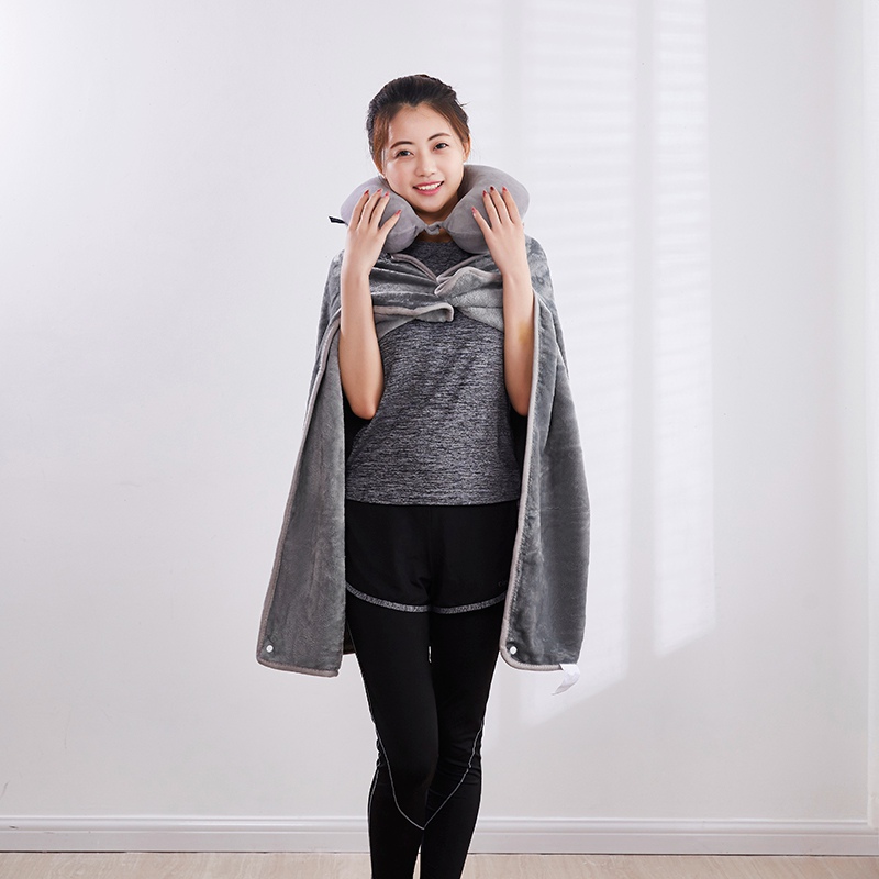 U型枕:超柔针织+记忆棉 披肩毯:金貂绒