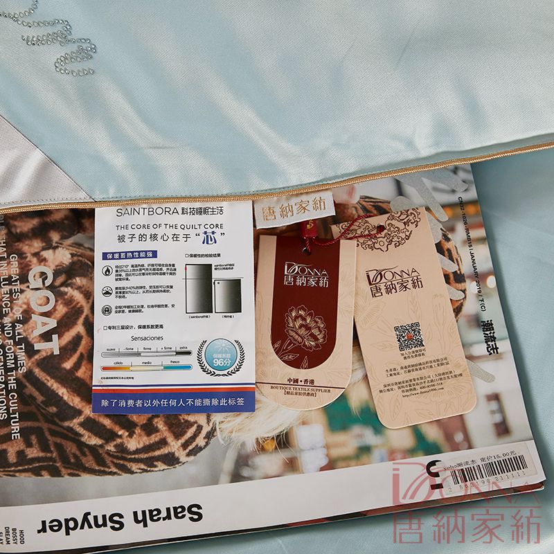 60支德绒(100%聚酯纤维) 填充物:整张云绒棉 (100%聚酯纤维)