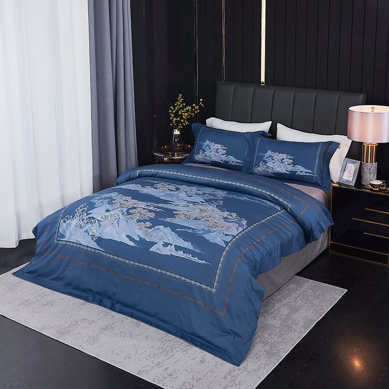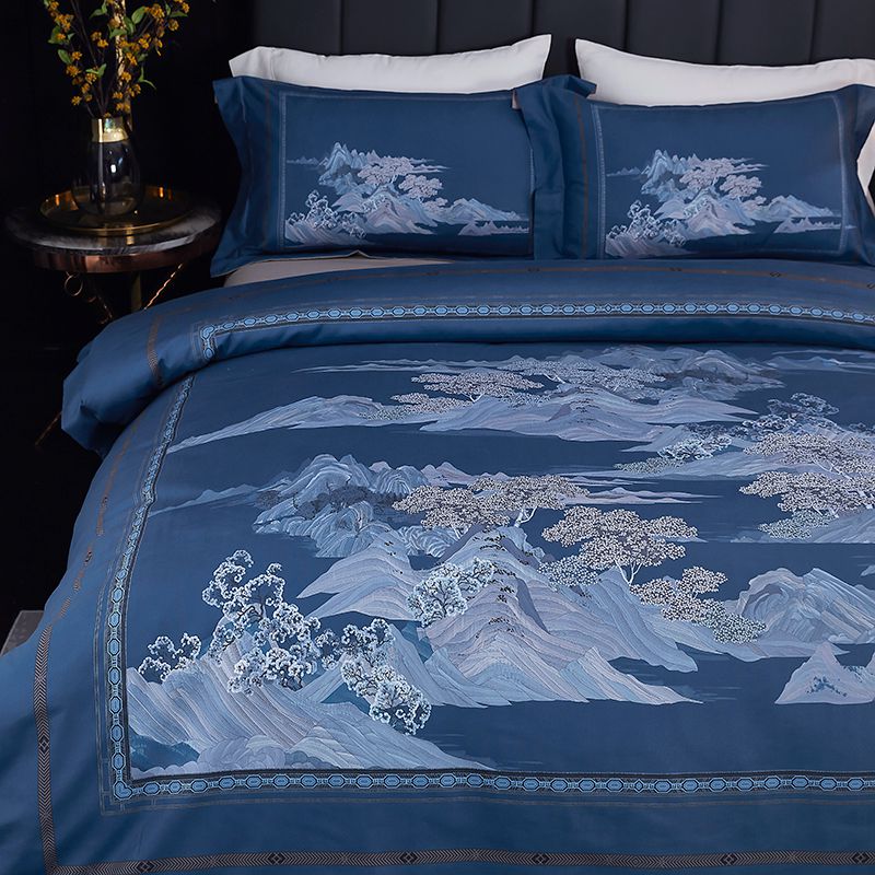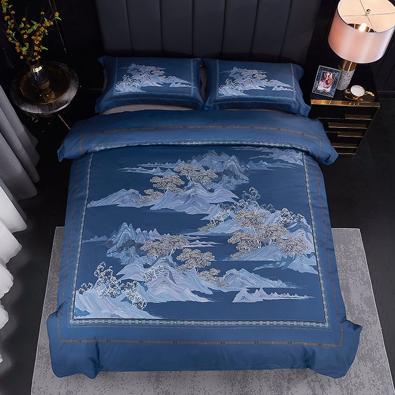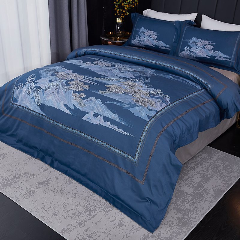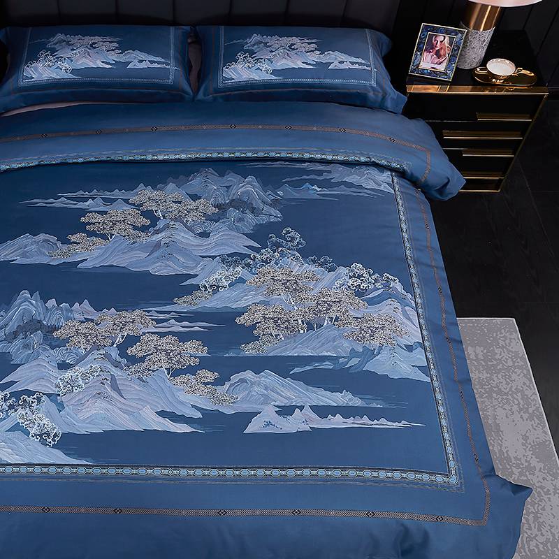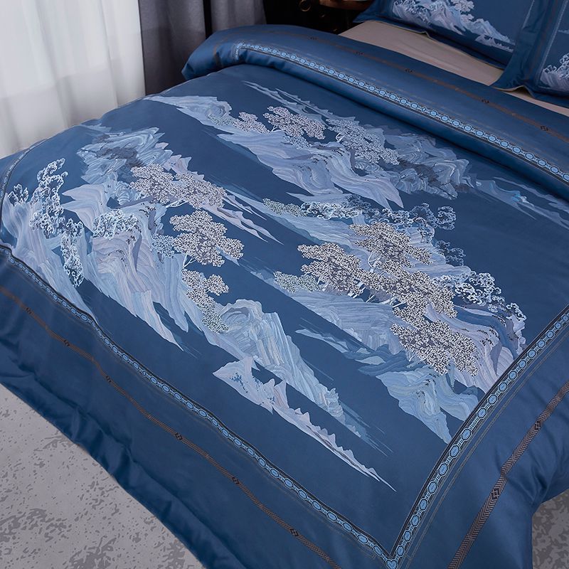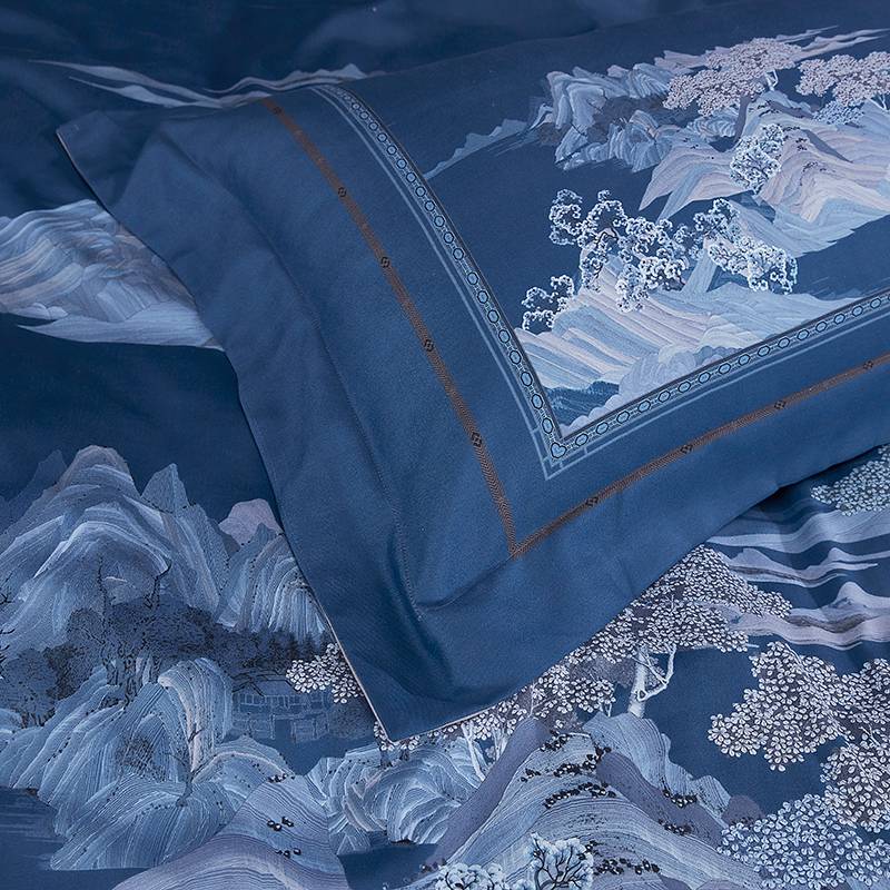 进口德绒数码活性四件套--山水家园