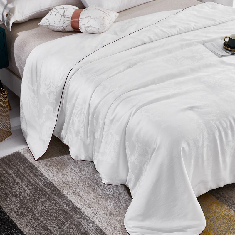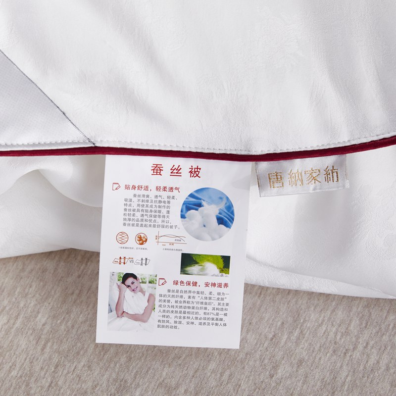 采用上等的蚕丝,特有的透气、透湿性能,使蚕丝被感觉更加滑,爽而不温,温而不燥。手感柔软,舒适透气。
